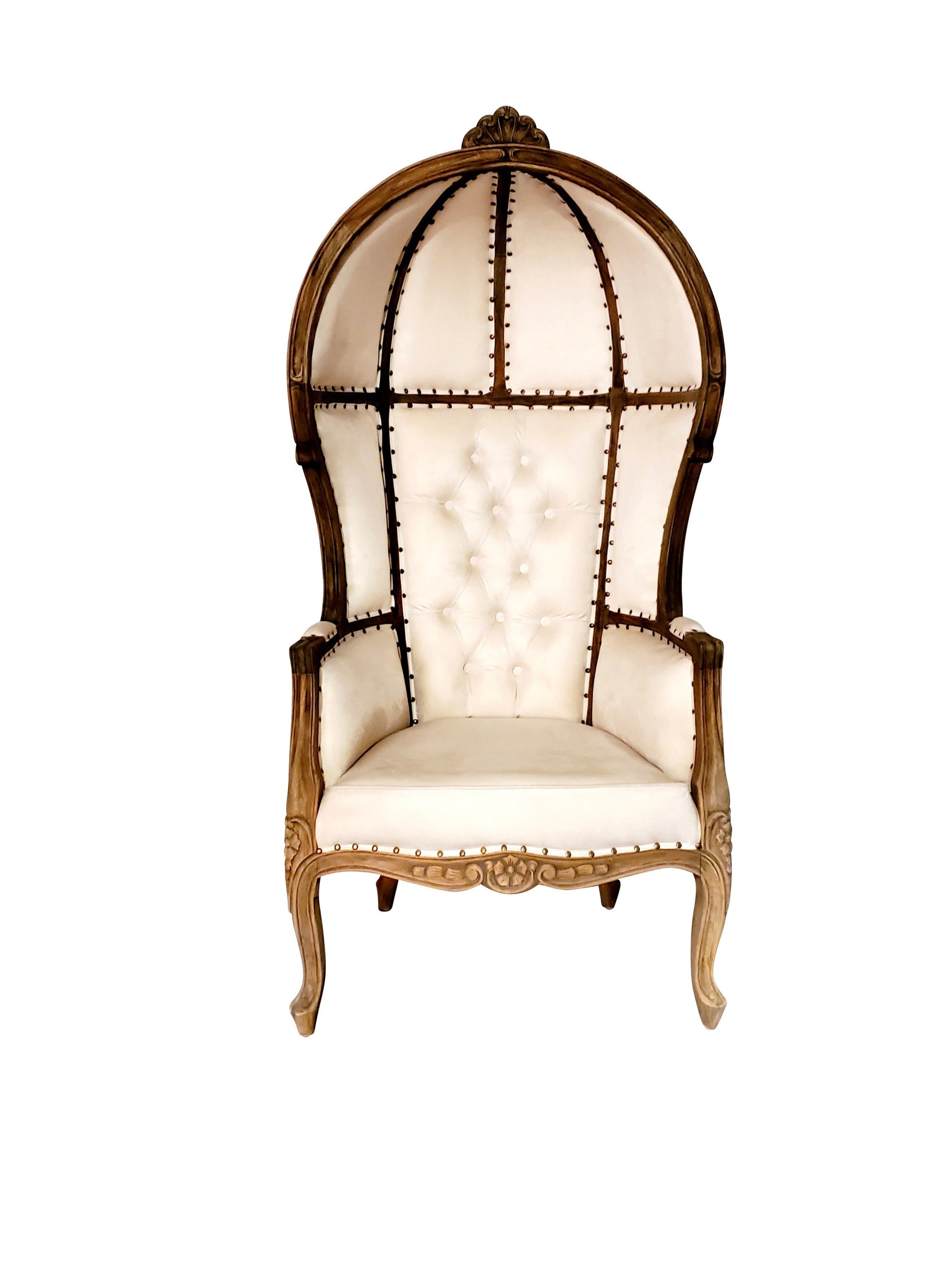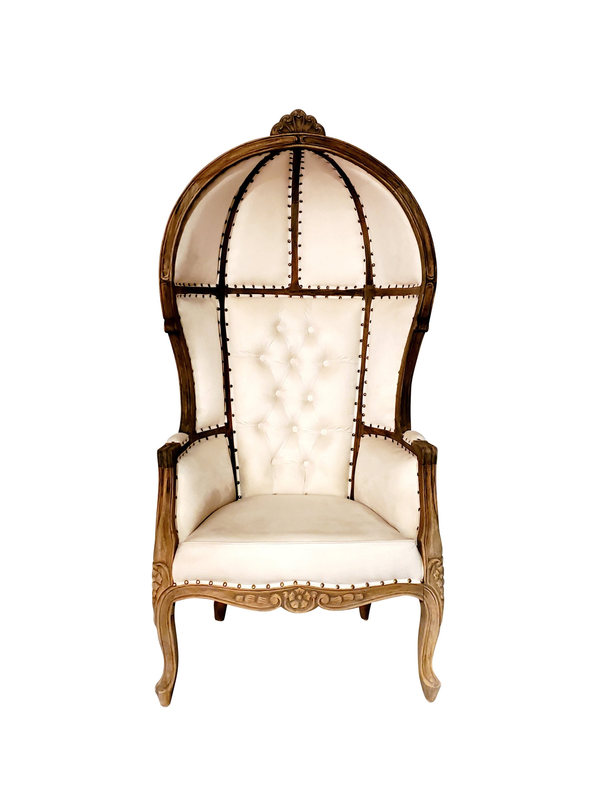Balloon Chair | Porter Chair | Throne | Louis XV Style Tufted Dome Canopy Chair | White Linen | French Inspired Design