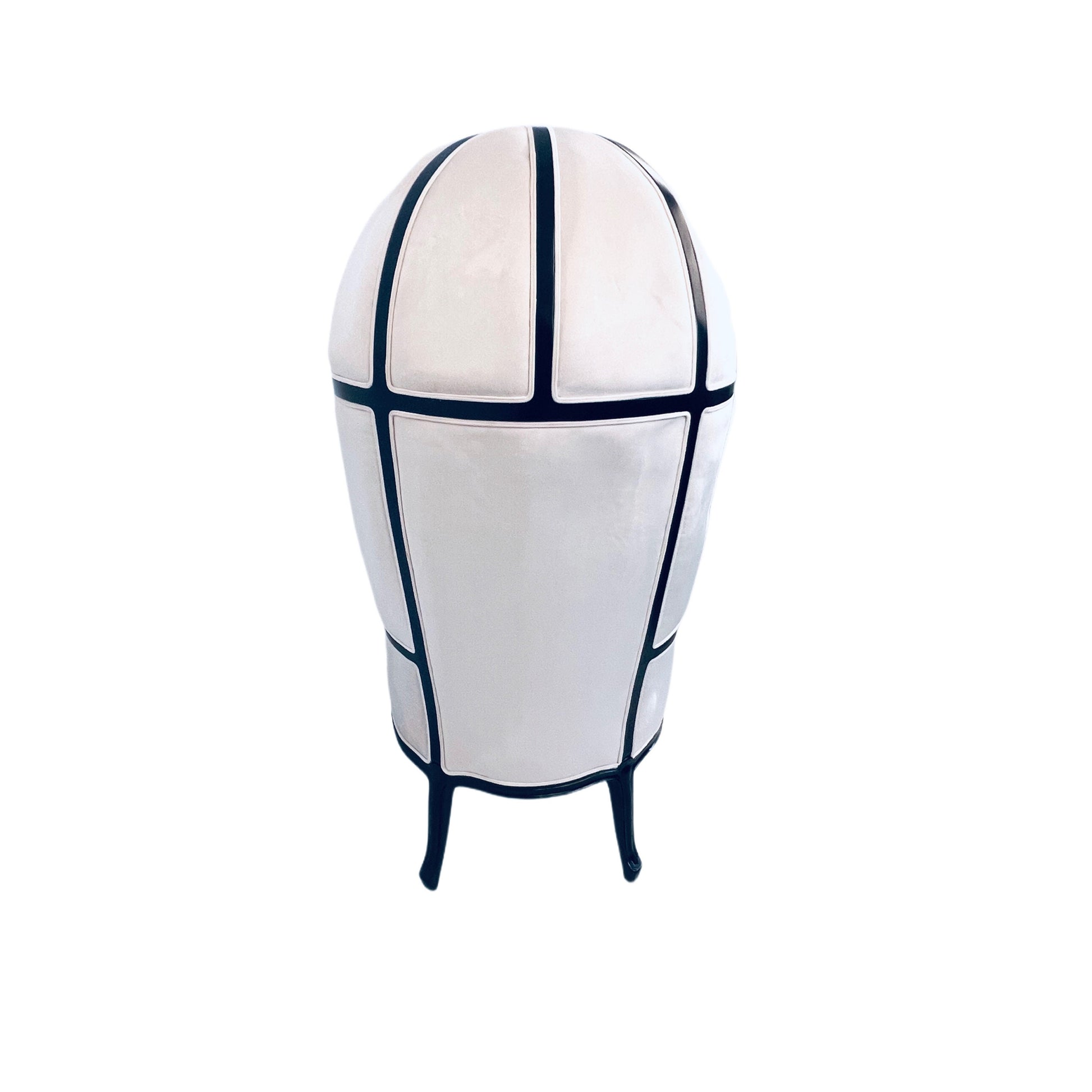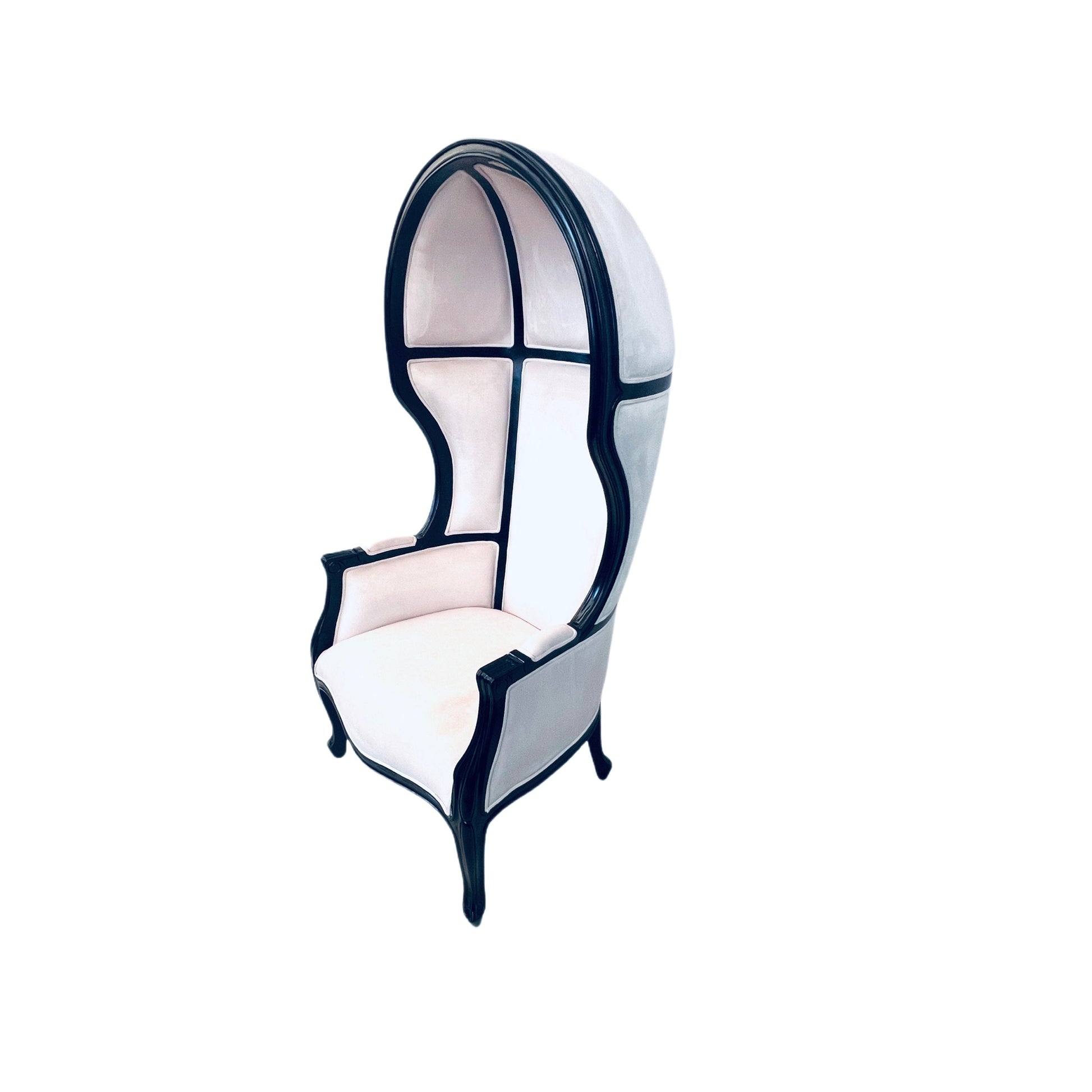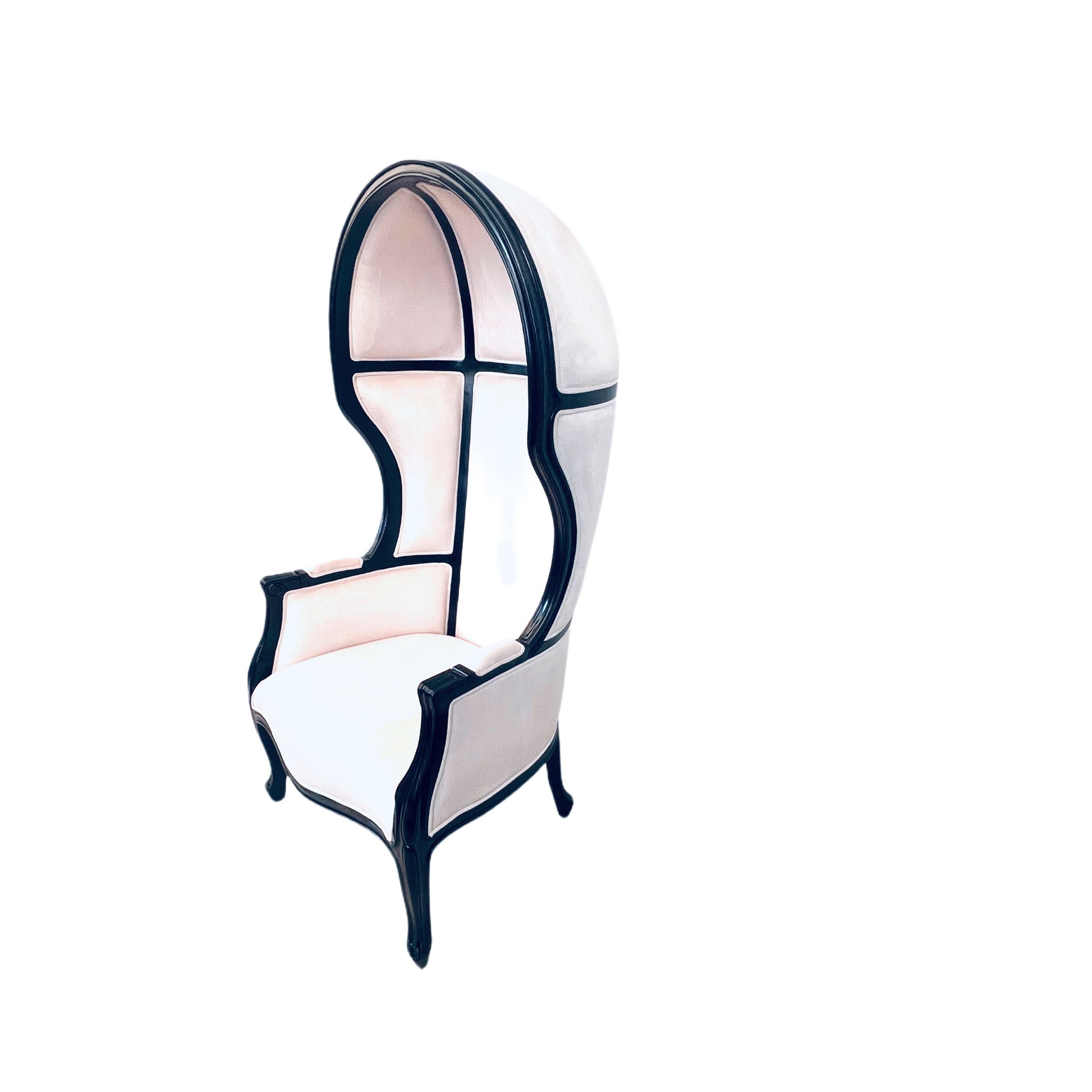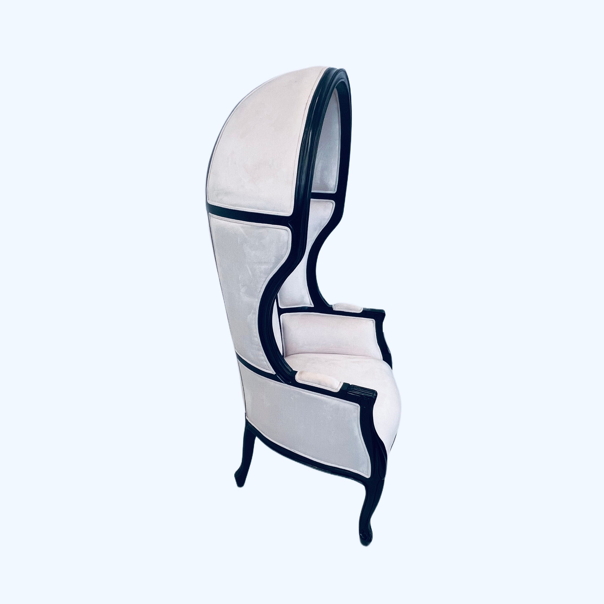Balloon Chair | Porter Chair | White Velvet Black Trim Throne | Louis XV Style Dome Canopy Chair | French Inspired Design