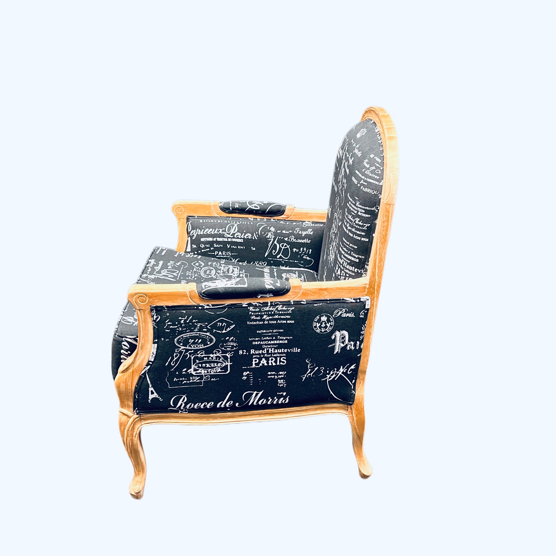 Trendy, chic French-design arm chairs. Pictures cannot do justice to the absolute beauty, charm and craftsmanship of these immaculate chairs; these have to be seen in person. Made with solid Mahogany wood. Hand-upholstered.