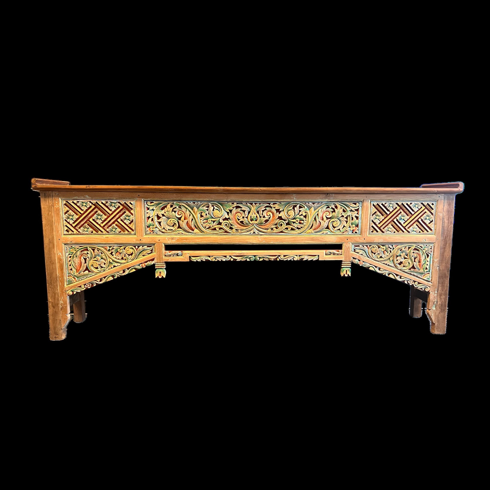 Large and Beautiful Reclaimed Wood Architectural archway console table made with recycled Teakwood. Intricately hand carved and masterfully crafted. Hand painted by master craftsman.