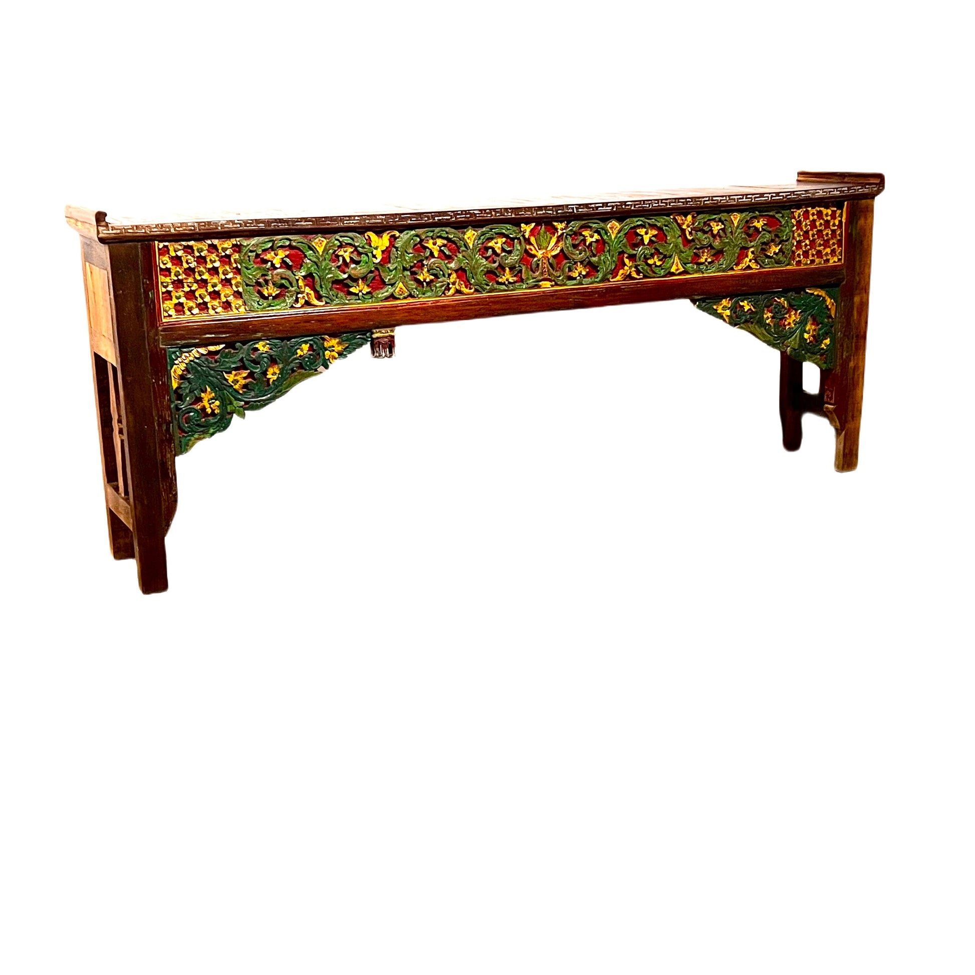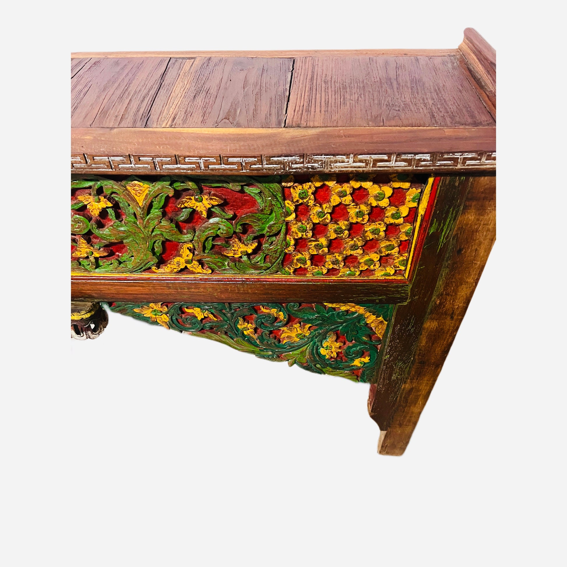 Experience the grandeur of our meticulously fashioned Reclaimed Wood Architectural Archway Console Table, a testament to timeless elegance and eco-conscious design. Crafted from resplendent recycled Teakwood, this piece embodies a harmonious blend of nature's splendor and human artistry. Every intricate detail is a symphony of hand-carved perfection, painstakingly brought to life by our master craftsmen. Adorned with hand-painted motifs that tell stories of tradition and creativity, this console table stands as a majestic centerpiece, inviting admiration and awe into any space.