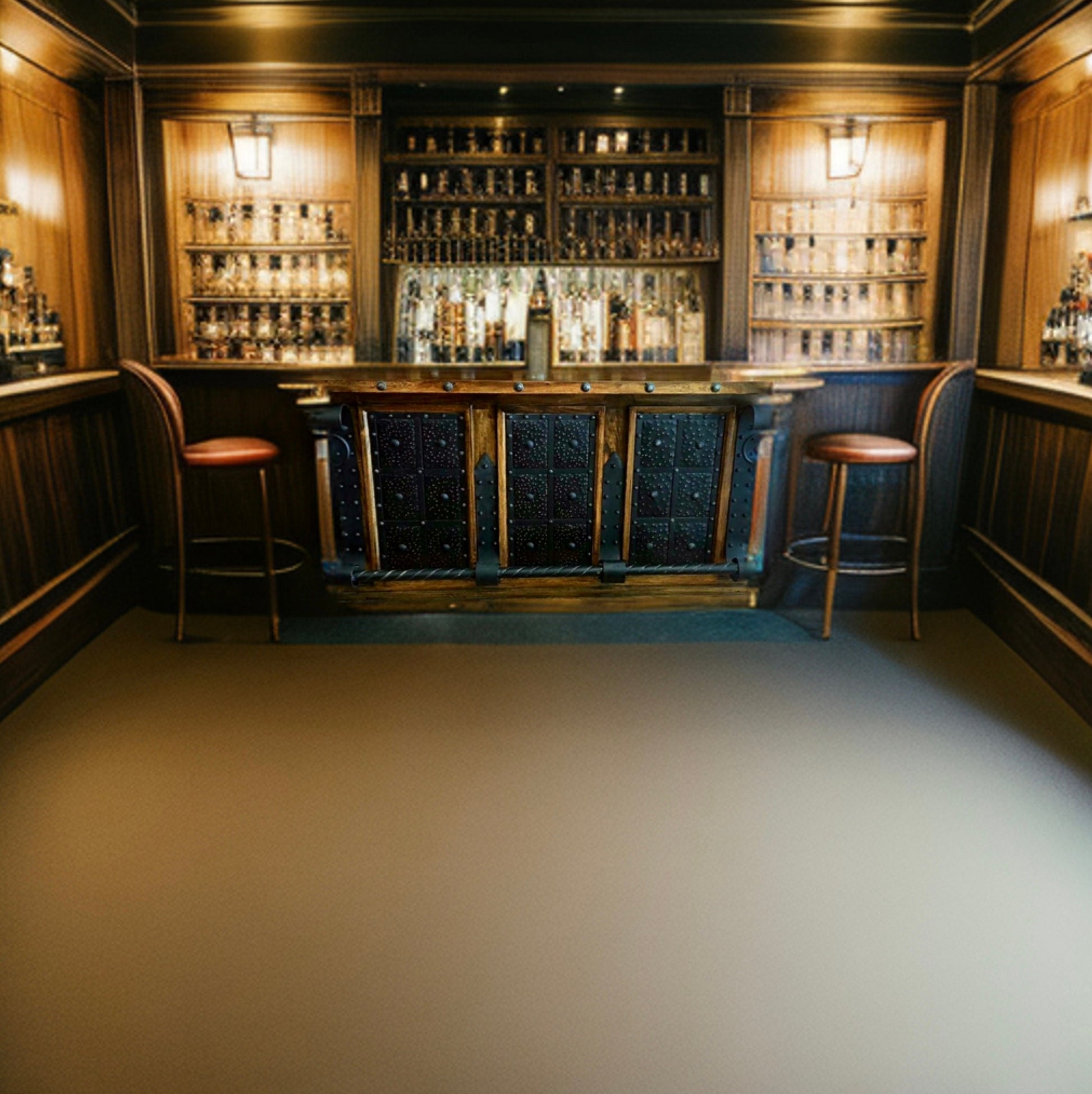 Bring old world charm to your home. A solid wood bar manufactured out of expensive Mesquite wood. Decorative handmade, hand chiseled metal artwork throughout the piece.