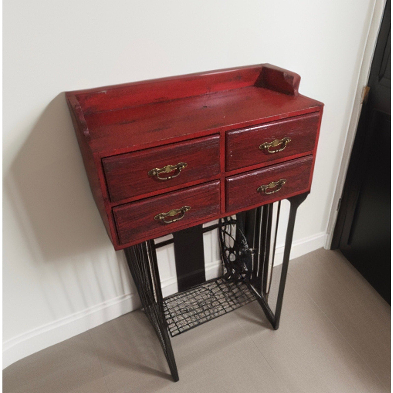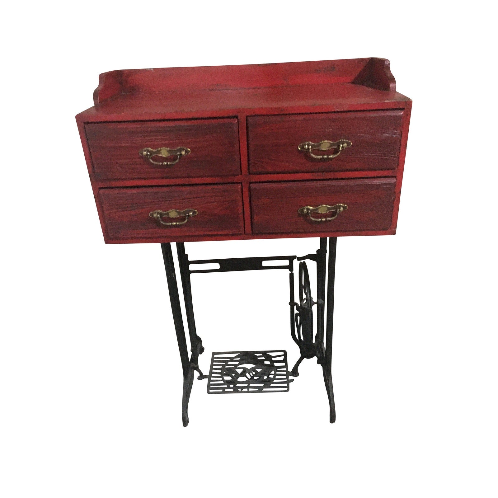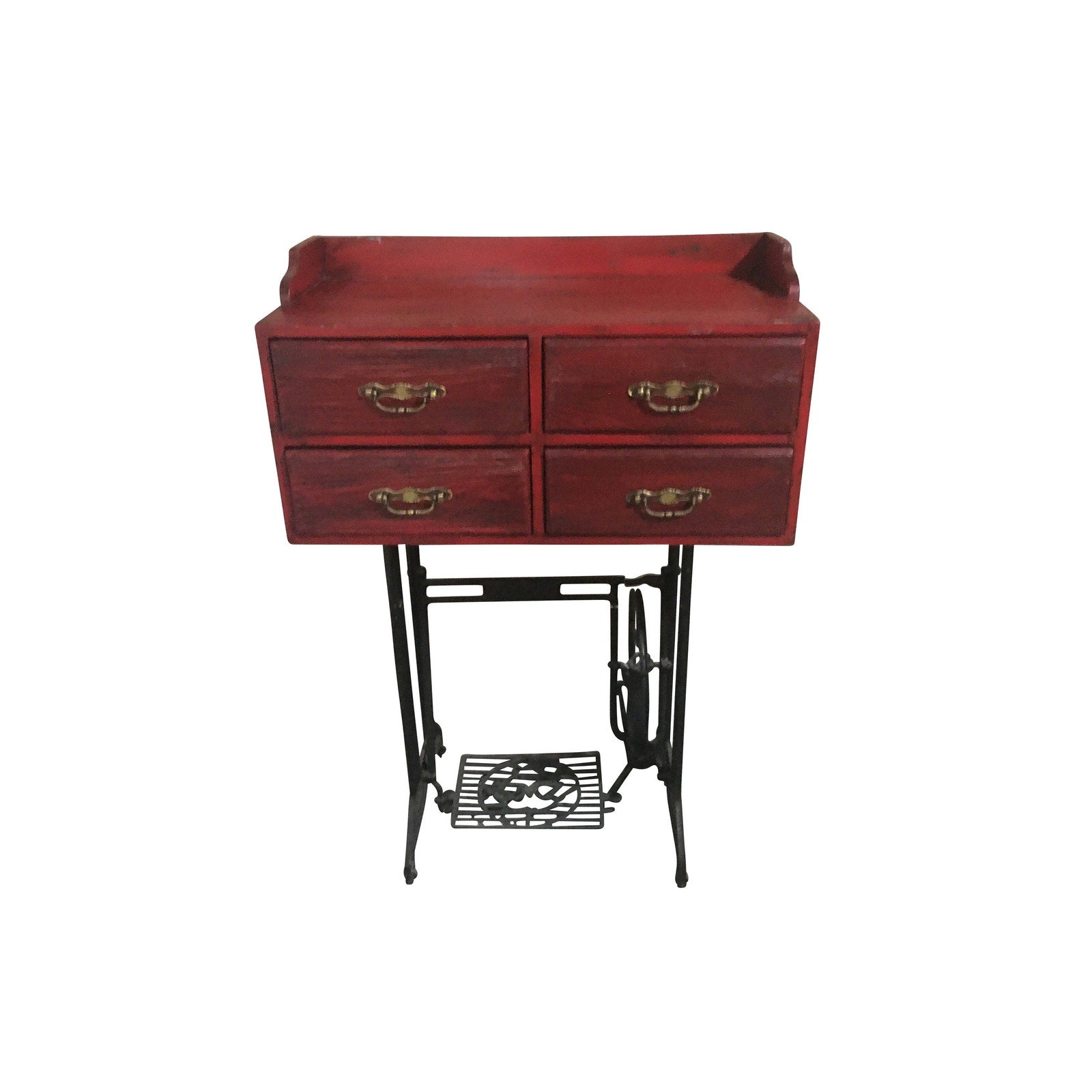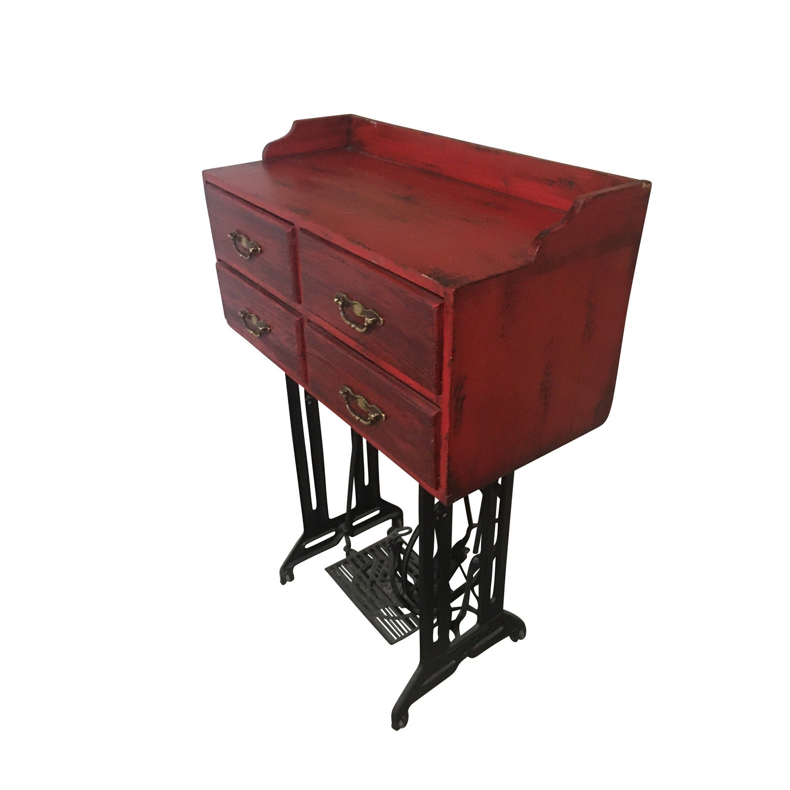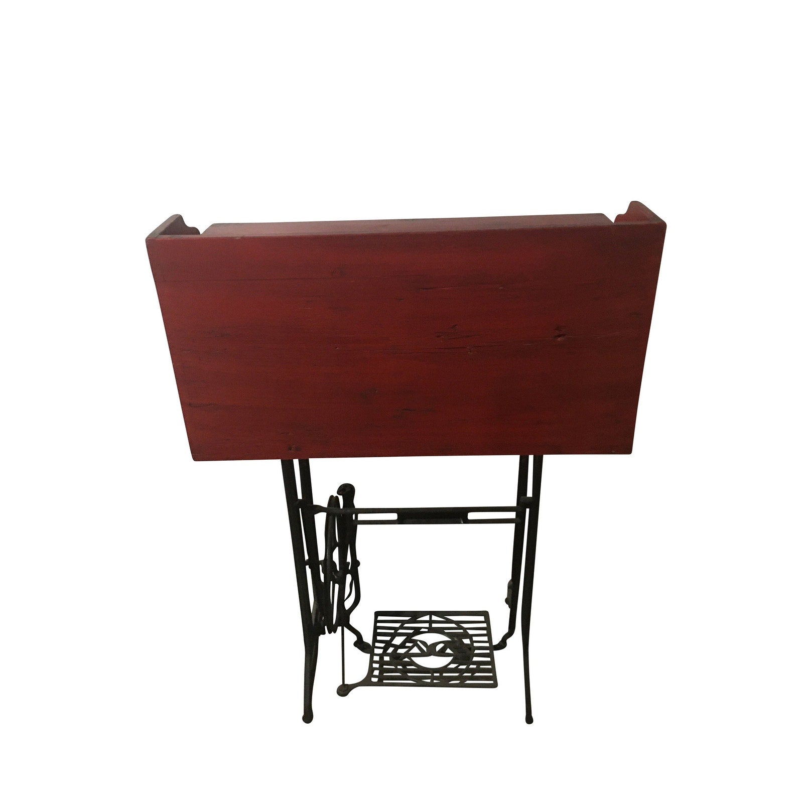 This handmade table combines the warmth of reclaimed teakwood with the strength of a vintage cast iron sewing machine base. The result is a heavy, durable piece that merges industrial charm with timeless craftsmanship.
