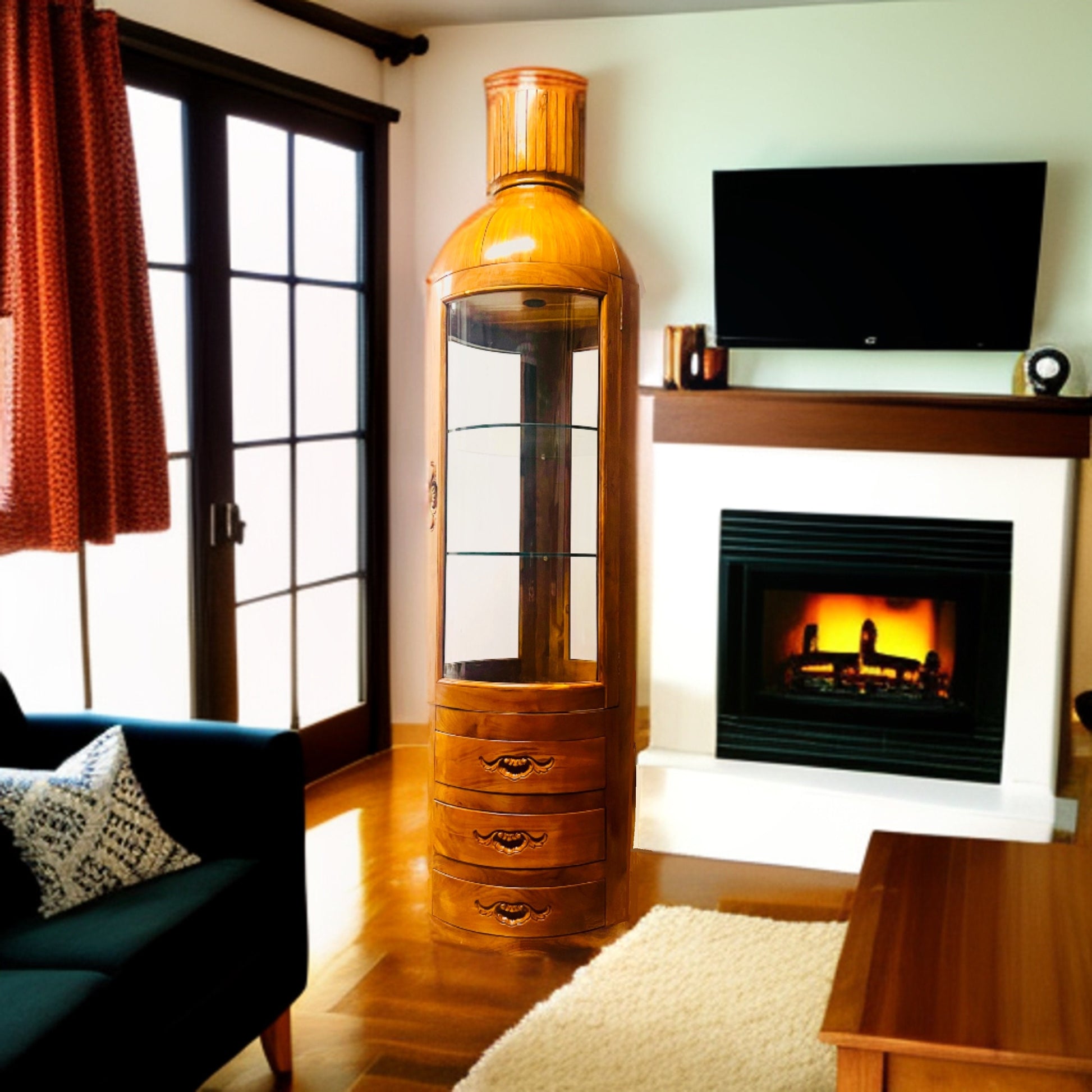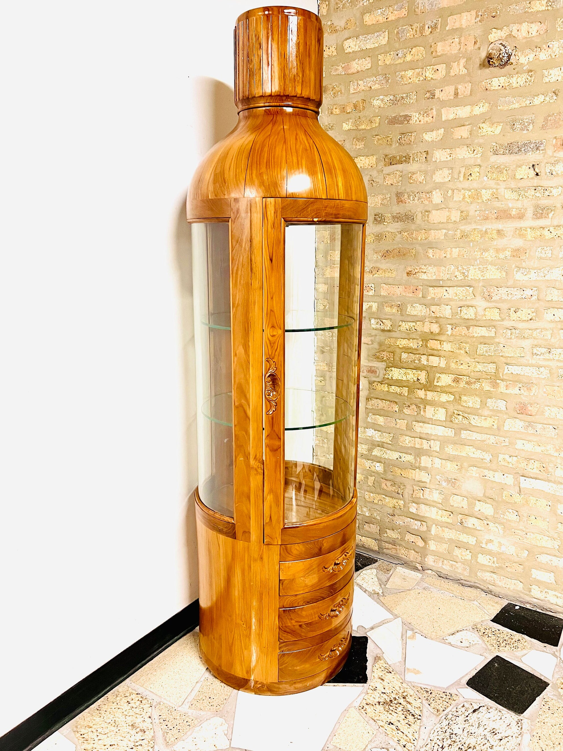 Teak Bottle Shaped Display Cabinet Glass Displays Wooden Drawers Unique Teak Display Cabinet Glass Display Cabinet Showcase Cabinet